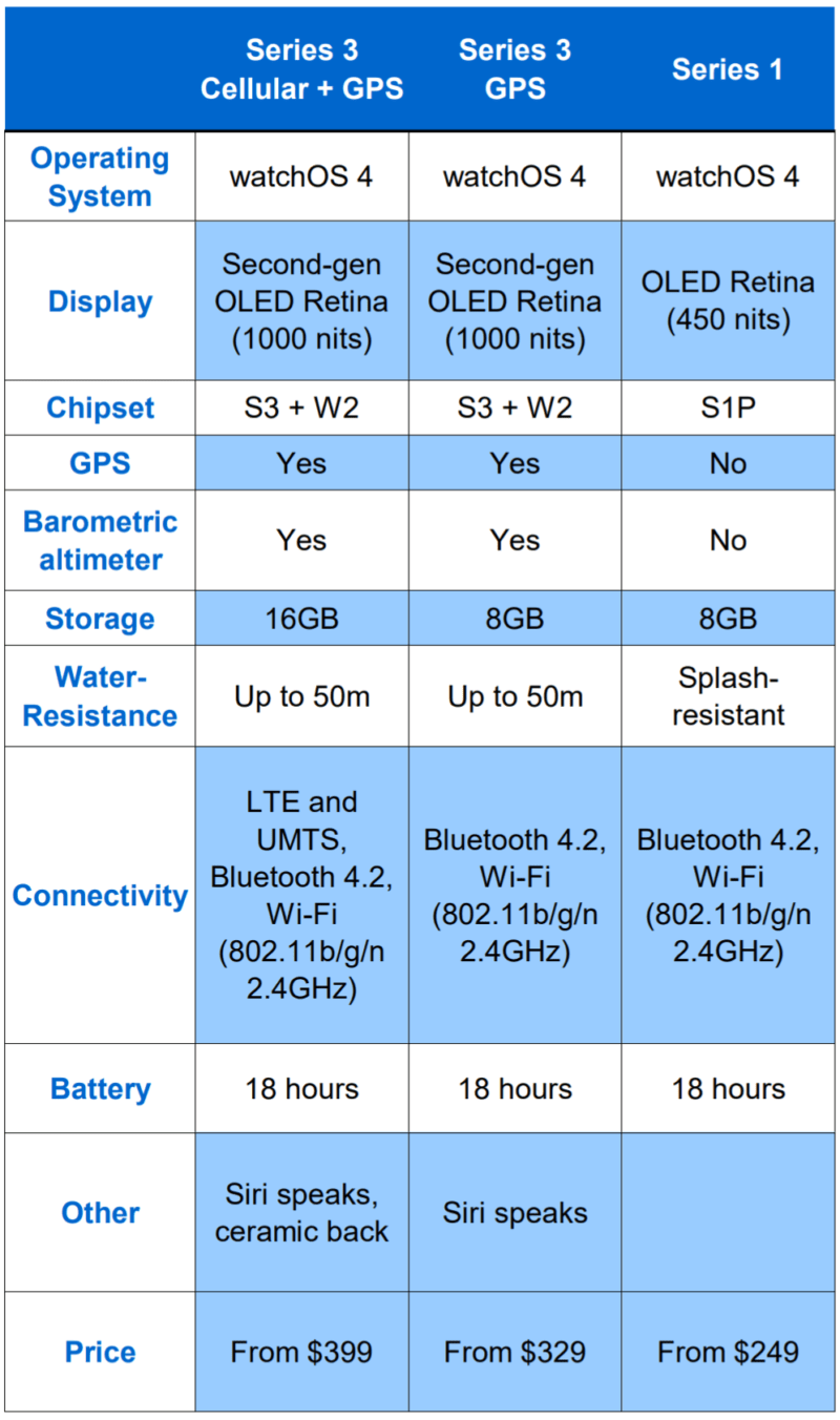 Apple Watch Comparison Chart 2024. The latter also comes with the option of a stainless steel case, plus cellular and gps, and starts at. In 2024, apple currently offers three apple watch models, the series 9, ultra 2, and the se.